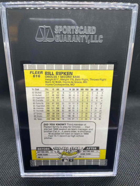 1989 Fleer GLOSSY Bill Ripken FF Black Box Error Card #616 SGC 9 Mint