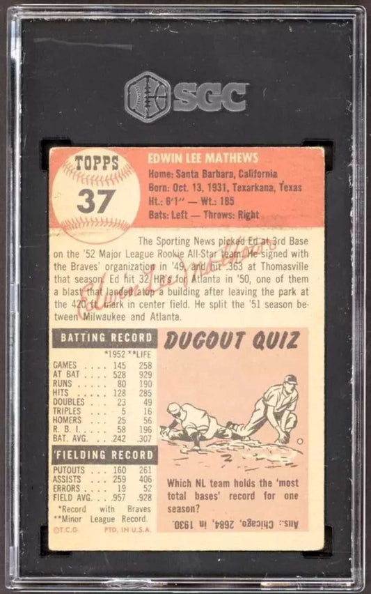 1953 Topps #37 Eddie Mathews BRAVES SGC 4 VG/EX