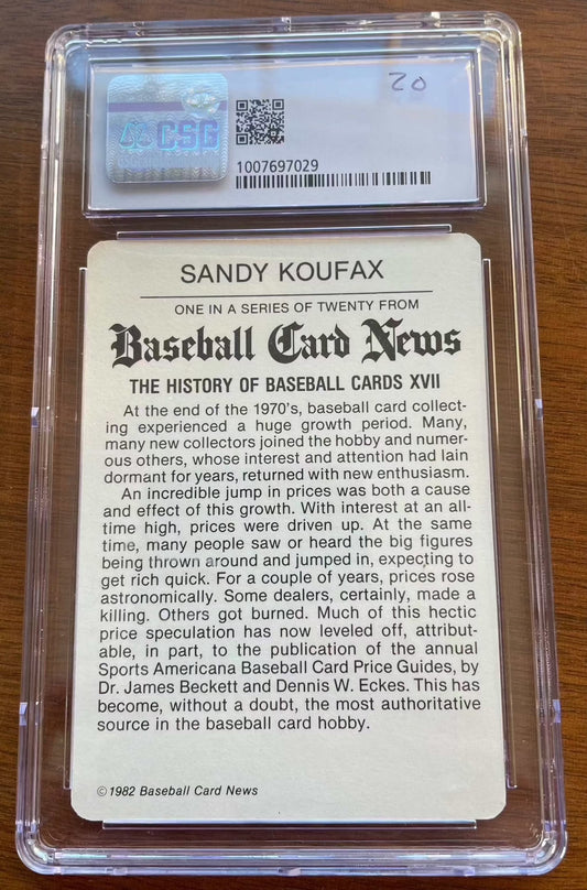 1982 Baseball Card News History of Baseball Cards Sandy Koufax #17 HOF