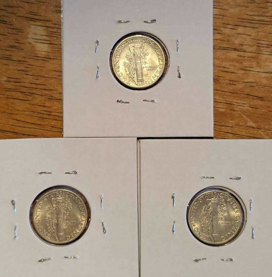 1944 - Mercury Dime (Lot of 3 coins) - Mint!