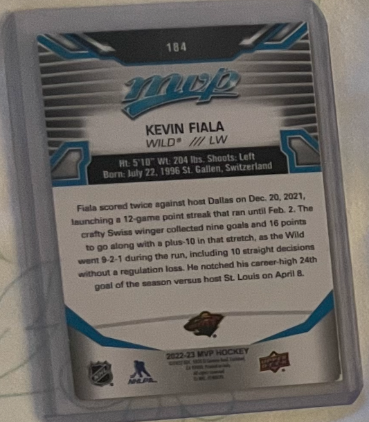 Kevin Fiala Autographed 2022-23 MVP Hockey Card (184) – Minnesota Wild