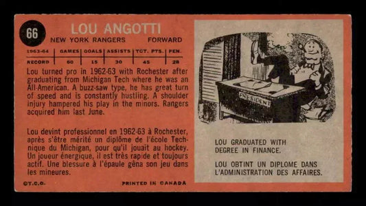 1964-65 Topps Lou Angotti 66 Rookie RC (Stunning Vibrant Colors!)