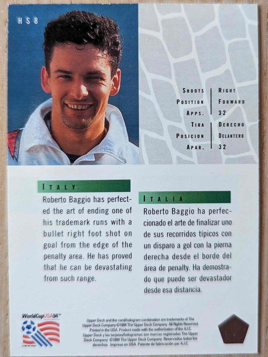 1994 Upper Deck World Cup USA Roberto Baggio #HS8 Hot Shots Soccer Card