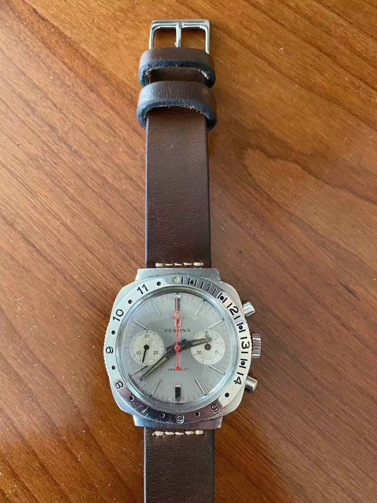Vintage Festina Incabloc Chronograph Valjoux 7733 38mm Watch - Serviced!